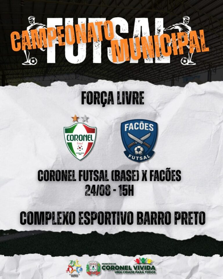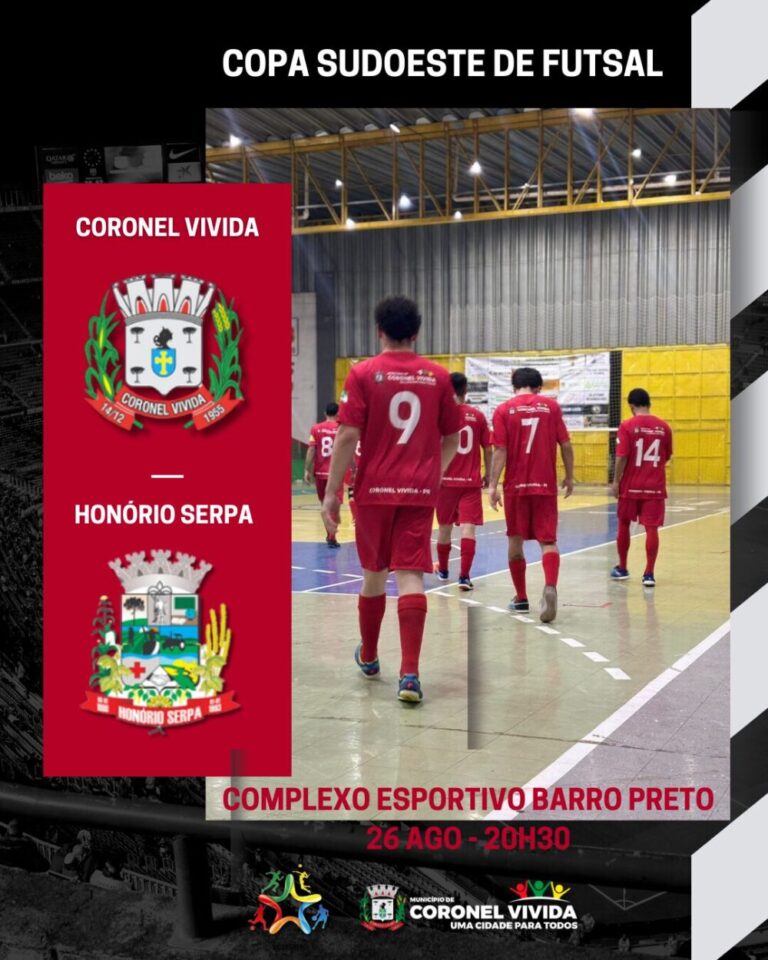 Na próxima terça-feira, 26 de agosto, Coronel Vivida entra em quadra por mais uma rodada da Copa Sudoeste de Futsal. O adversário da vez será Honório Serpa. Se vender, Coronel chegará a 7 pontos e ficará muito perto da classificação.