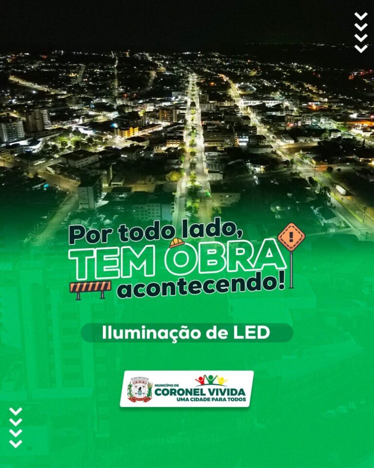 Nossa cidade está cada vez mais iluminada Isso se dá por conta da troca de lâmpadas de sódio por iluminação de led, clareando muito mais as ruas do centro e dos bairros. Seguimos investindo para iluminar 100% dos nossos bairros