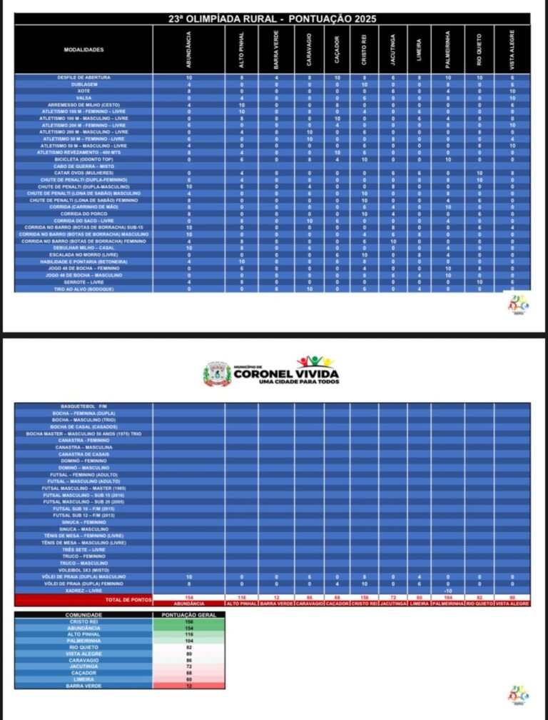 OLIMPÍADA RURL 2025 – RESULTADOS E PROGRAMAÇÃO (25/07)