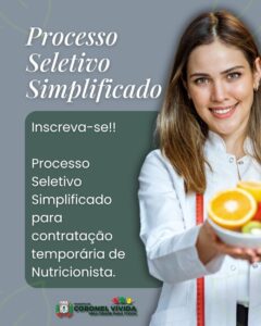 A abertura das inscrições do Processo Seletivo Simplificado para contratação temporária de Nutricionista e Técnico em Segurança do Trabalho, a fim