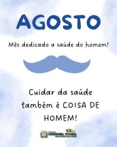 Por isso, pedimos que os homens abracem essa causa tão importante. Durante o mês de agosto, as unidades básicas de saúde estarão atendendo, em alguns dias, em horário estendido.