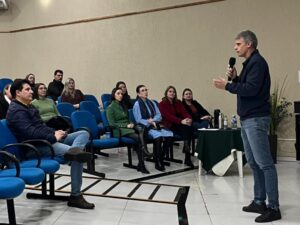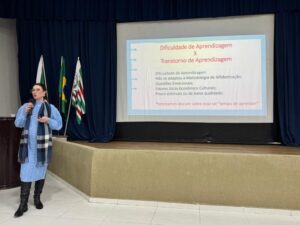 Na ocasião, a psicóloga Emanuelle Luana e a fonoaudióloga Nathalyê Cestonaro apresentaram todo o percurso do projeto: da idealização ao desenvolvimento, destacando os resultados obtidos e concluindo com a importante implementação em todas as escolas da rede municipal.