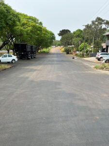 Além do recapeamento asfáltico em quase toda a sua extensão, o trecho que era de calçamento, ligando o bairro à empresa VW Madeiras, também recebeu asfalto, garantindo mais conforto e segurança para todos.