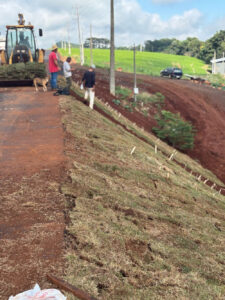 A outra equipe trabalhou no plantio de grama ao longo do Parque Industrial, dando uma nova cara ao local. O mesmo trabalho também será feito na Perimetral Verde e Amarela.