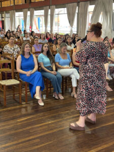 O dia 2 de abril de 2025 foi repleto de aprendizado sobre o Transtorno do Espectro Autista. Durante todo o dia, os professores da Rede Municipal de Ensino participaram de uma grande capacitação com psicóloga Graciane Barboza da Silva e a terapeuta Maura Cristina Lange, que trouxeram os temas “Estudos de Caso e Exercícios Práticos de Manejo de Comportamento para o TEA” e “Habilidades Essenciais para Indivíduos com TEA”.