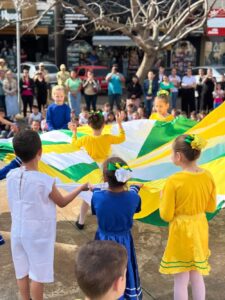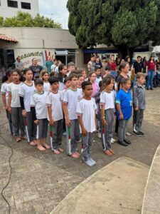 Por fim, os alunos Maria Luiza, Leonardo, Ísis e Ana Vitória, da Escola Futura, interpretaram a música Brasil Gigante, de autoria do professor Marcelo Heemann, diretor da escola.