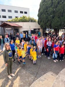 Os alunos do Pré II da escola Municipal Prefeito Paulino Stédile apresentaram a coreografia da música Amarelo, Azul e Branco.