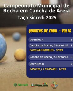 - Cancha de Bocha J S Fornari A 3×0 Dorneles B – (Cancha de Bocha J S Fornari A classificado)