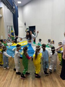 A turma do Maternal II do CMEI Primavera apresentou a música “Brasil Verde e Amarelo” de Daniel Ludke. A coordenação foi das professoras Débora, Juliana e Iliandra.