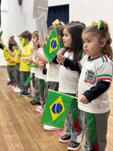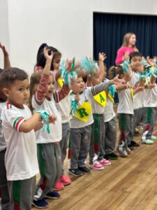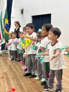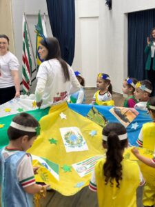 A turma do Maternal II do CMEI Primavera apresentou a música “Brasil Verde e Amarelo” de Daniel Ludke. A coordenação foi das professoras Débora, Juliana e Iliandra.