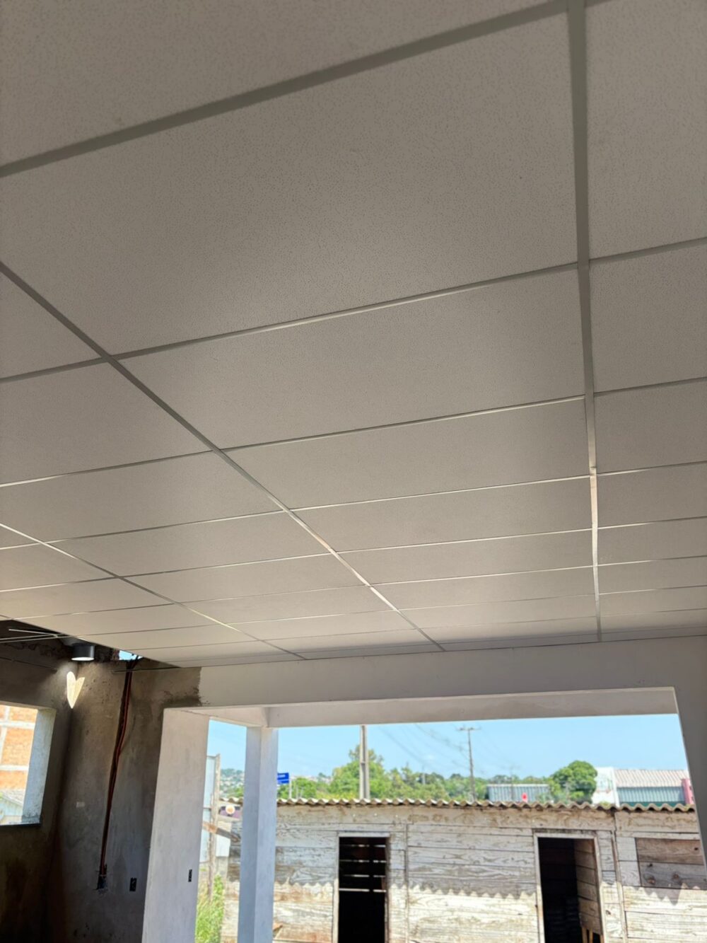 O ritmo das obras no novo CMEI Arco-Íris estão seguindo o cronograma e nesta semana os forros removíveis foram inalados em algumas salas. A estrutura e gesso também já foi colocada em seus respectivos pontos.