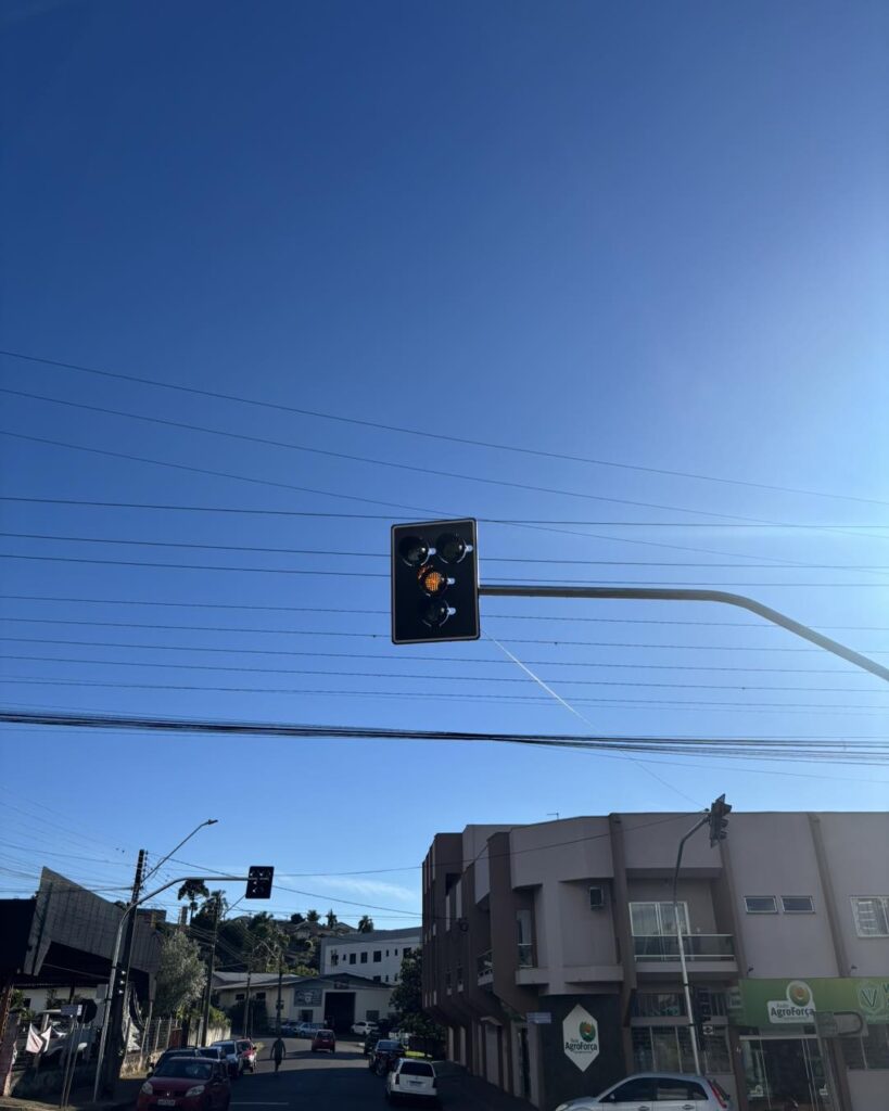 Os semáforos estão 100% instalados nos seus respectivos pontos, porém, como mencionado anteriormente, funcionando apenas no modo de alerta.