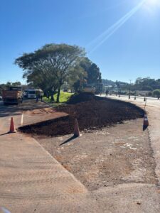 Uma delas é o começo da implantação da massa asfáltica na via que ligará o trevo de acesso do Posto San Rafael ao trevo de acesso ao centro da cidade.