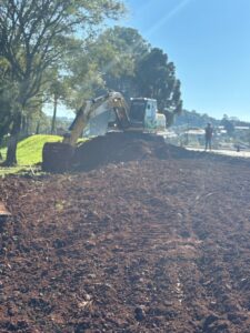 Enquanto isso, outra equipe está trabalhando na escavação do terreno que futuramente dará espaço a via de desaceleração para entrada ao mesmo posto.