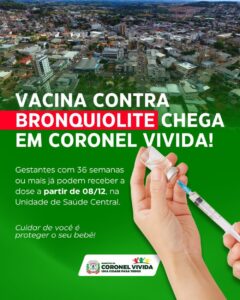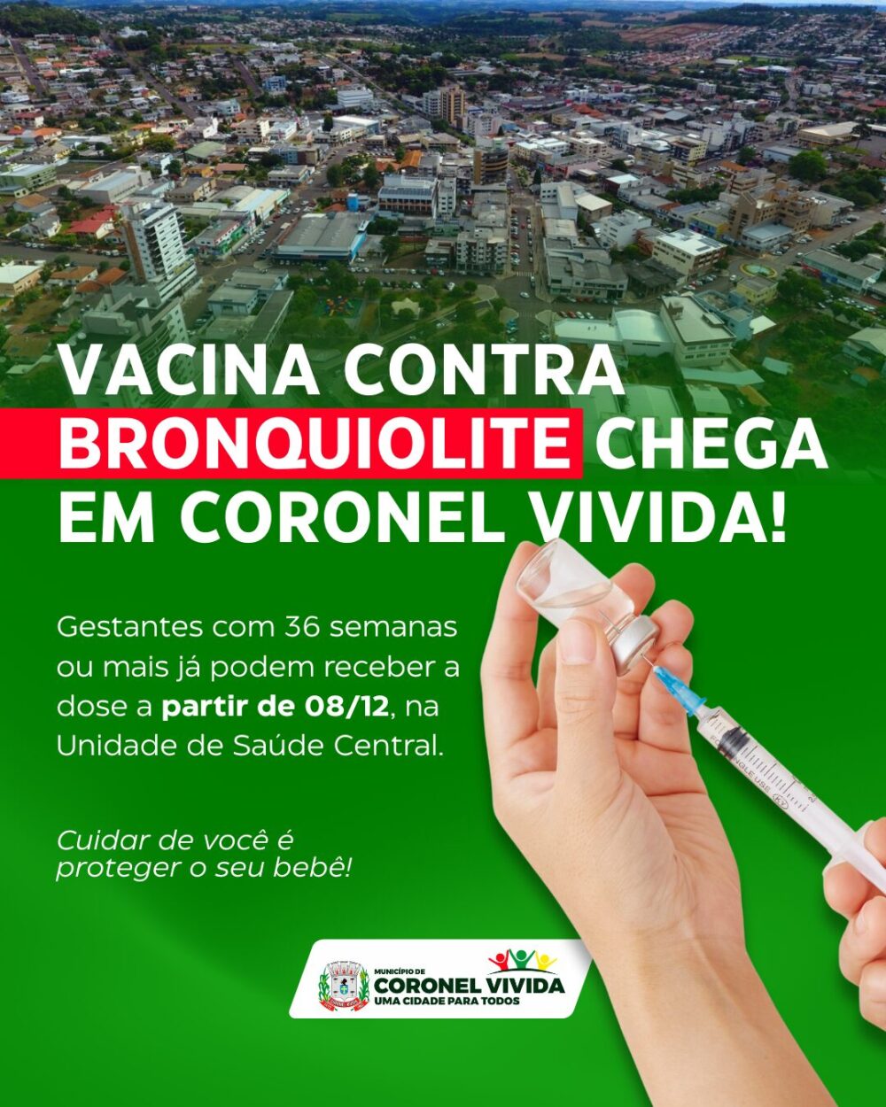 A partir do próximo dia 8 de dezembro, gestantes com 36 semanas ou mais, poderão receber a dose da vacina contra a Bronquiolite na Unidade de Saúde Central.