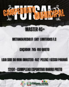 Confira todos os jogos do final de semana nos cards. E fique atento(a) que nessa semana tem mais Campeonato Municipal de Futsal.