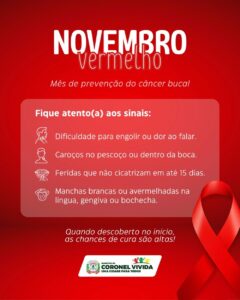 O Novembro Vermelho é uma campanha de conscientização e prevenção dedicada ao câncer de boca. O objetivo principal é alertar a população sobre os riscos, a importância do diagnóstico precoce e a adoção de hábitos saudáveis. A campanha busca: