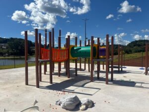 Agora, chegou a hora das crianças ganharem um novo espaço para sua diversão. O novo playground começou a ser montado, no novo espaço. Espaço este, que aliás, também terá cerca de proteção e gramado sintético para maior segurança dos pequenos.