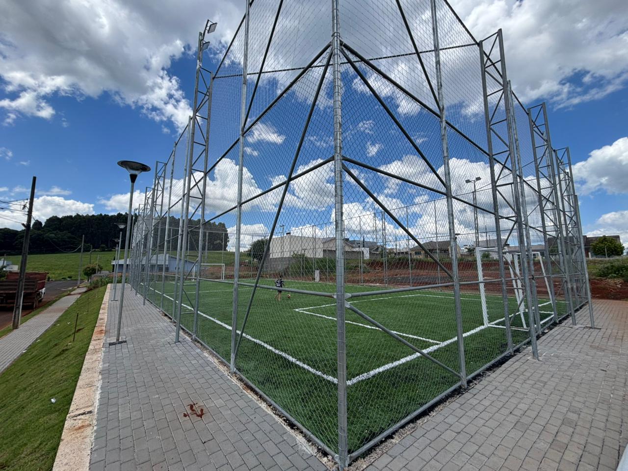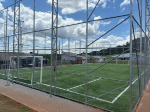 A partir de agora, as crianças tem um amplo espaço para divertirem-se, com segurança acima de tudo, já que a quadra é completamente fechada com telas e redes de proteção, o que impede que a bola vá parar no meio da rua.