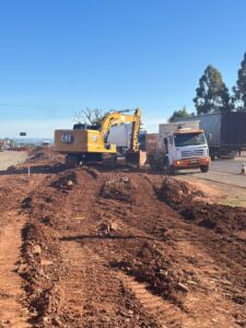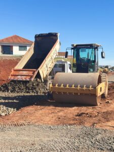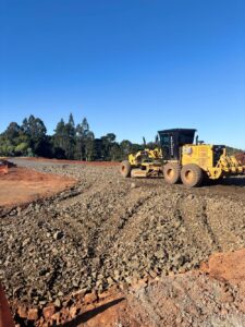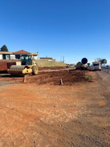 Os trabalhos dessa semana, consistem em carga e descarga de terra, espalhamento de material para a base, além de outros serviços.
