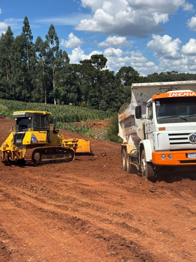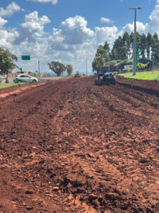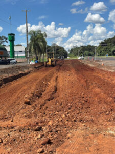 As obras da nossa Perimetral Verde e Amarela, chegaram agora ao trevo de acesso as empresas San Rafael e Coopertradição.