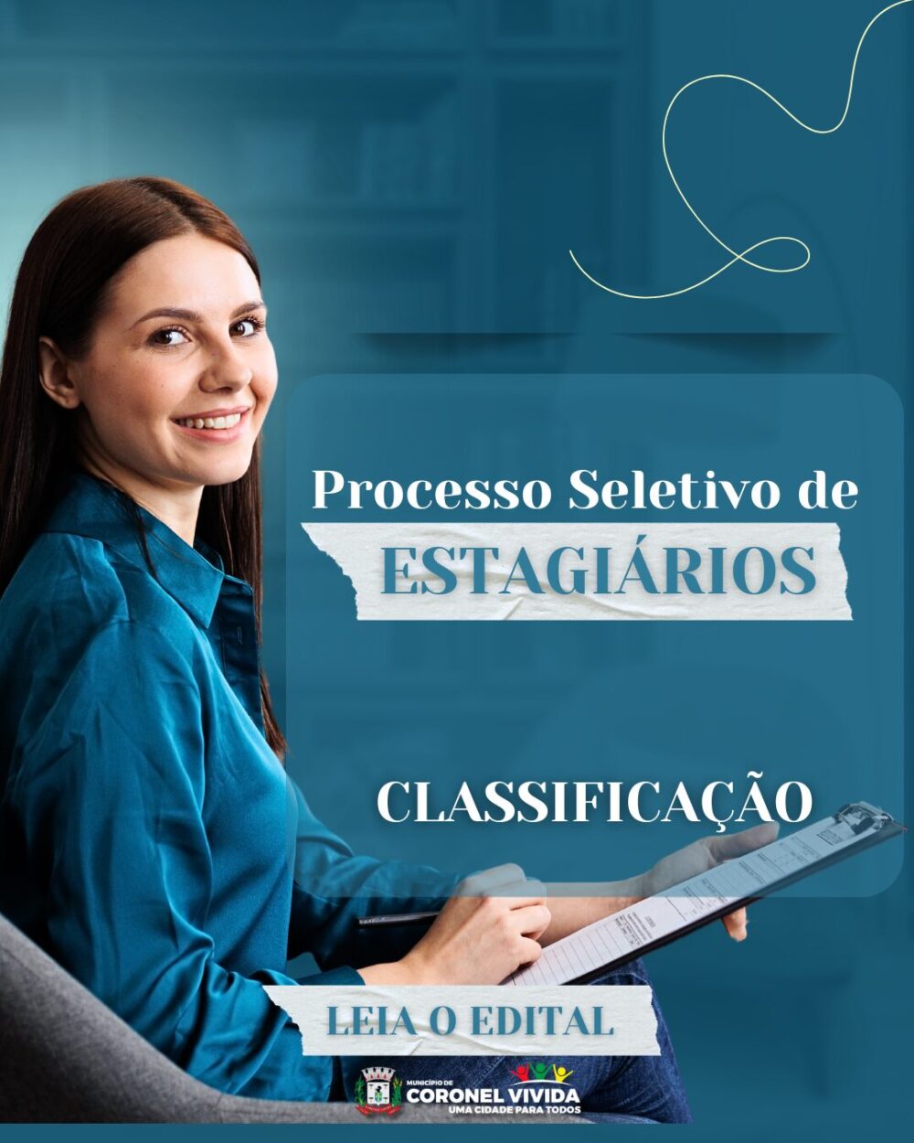 O Prefeito Municipal de Coronel Vivida, Estado do Paraná, usando de suas atribuições legais, considerando as inscrições de estagiários protocoladas durante o período de 24/02/2026 a 27/02/2026, resolve tornar público a relação nominal, por ordem classificação, dos estudantes que se candidataram a vaga de estágio, na referida área a qual inscreveu-se, conforme cronograma.