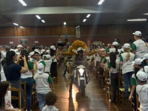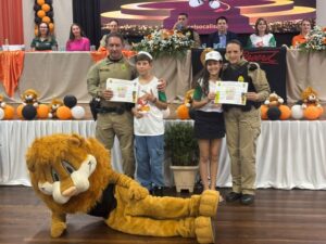 As centenas de crianças presentes estavam muito animadas com todas as atrações do evento, sendo elas: leitura e premiação das melhores redações, chegada do leão do Proerd na moto da Polícia Militar e suas interações posteriores, além da festa realizada toda vez que os nomes das escolas eram chamadas. O momento da fala do 3º Sargento Marcelo Besson também foi muito festejado pelos alunos.