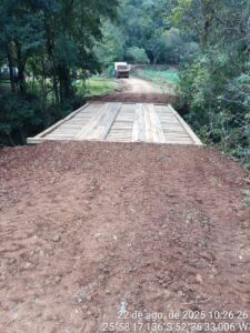 Dando continuidade aos serviços de conservação e recuperação de estradas do interior, a Secretaria de Obras, Viação e Urbanismo realizou novos serviços de limpeza de bueiros e construção de nova ponte na Linha Borges – Francescon.