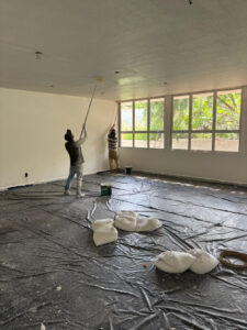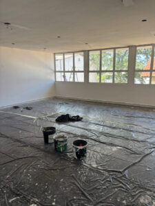 Salas de aula renovadas, com janelas maiores para mais ventilação, novo piso e pintura;