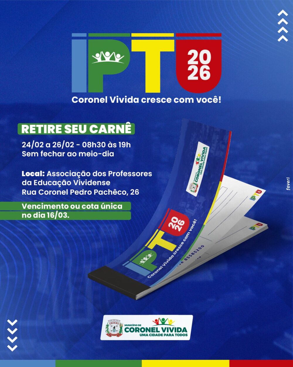 O local para a entrega dos carnês será na Associação dos Profissionais da Educação Vividense, das 8h30 às 19h, sem fechar para o almoço.