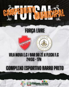 No próximo domingo, teremos 4 jogos válidos pelo Campeonato Municipal de Futsal. Serão 3 jogos pela categoria Força Livre e 1 pelo Master 40+