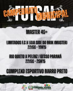 - Rio Quieto x Pelenz / Gesso Paraná – 20h15 – Master 40+
