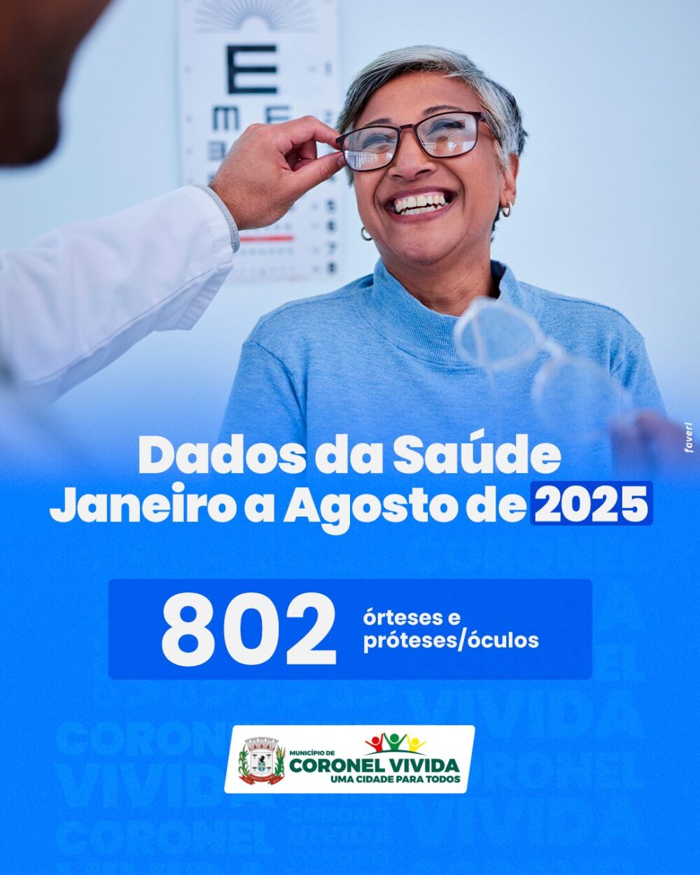 De janeiro a agosto, foram disponibilizados a população vividense 802 órteses e próteses/óculos.