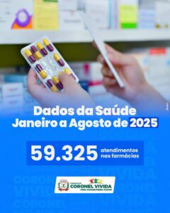 O número de atendimentos nas farmácias municipais foi de 59.325. Esse número representa a eficácia das farmácias, que distribuem remédios gratuitamente aos pacientes, minimizando seus problemas e dando mais tranquilidade e bem-estar no dia a dia.