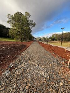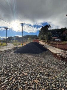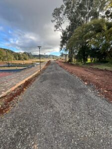 Com o bom ritmo de trabalho e o tempo colaborando, dentro de alguns dias, a nova rua de acesso ao Parque Municipal ficará pronta.
